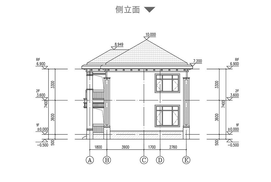 | 結構圖: | 柱施工圖:基礎平面圖,一層柱平面圖,二層柱平面圖,屋頂柱平面圖; 梁施工圖:一層梁平法施工圖,二層梁平法施工圖,頂層梁平法施工圖; 板施工圖:層板平法施工圖,二層板平法施工圖,屋頂層板平法施工圖 詳圖:樓梯平面,樓梯剖面圖; 其他:坡屋面施工說明圖一,坡屋面施工說明圖二 |