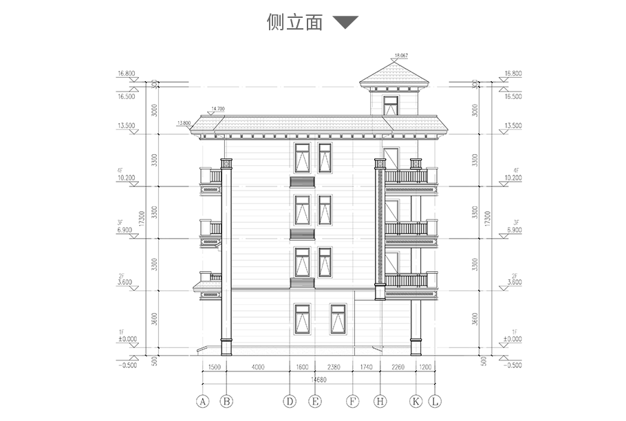 | 風格:新中式 | 層數:四層 | 結構形式:框架結構 | 圖紙編號:YH-4-6175 |