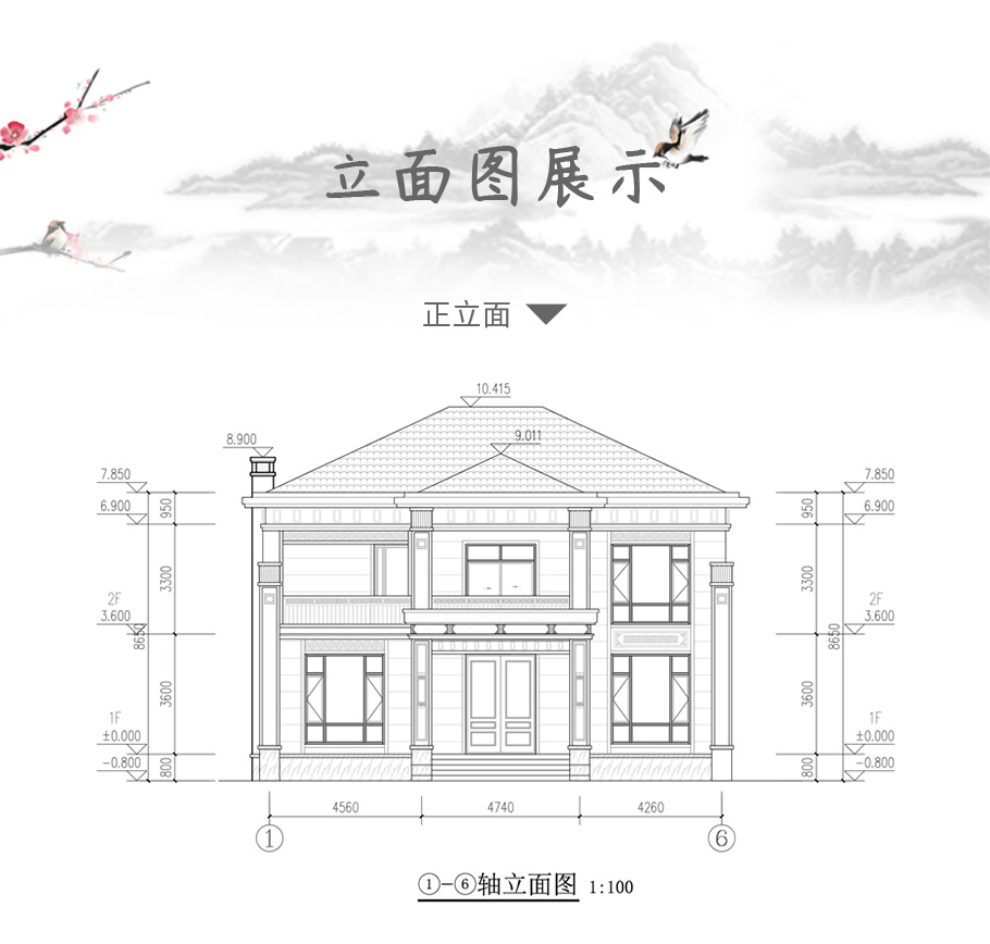 建筑平面圖:一層平面圖,二層平面圖; 建筑立面圖:東立面圖,西立面圖,南立面圖,北立面圖,剖面圖; 大樣圖:樓梯詳圖,細部大樣,門窗大樣 |