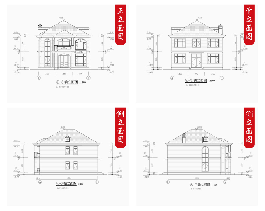 | 建筑圖: | 建筑平面圖:一層平面圖,二層平面圖; 建筑立面圖:東立面圖,西立面圖,南立面圖,北立面圖,剖面圖; 大樣圖:樓梯詳圖,細部大樣,門窗大樣 |