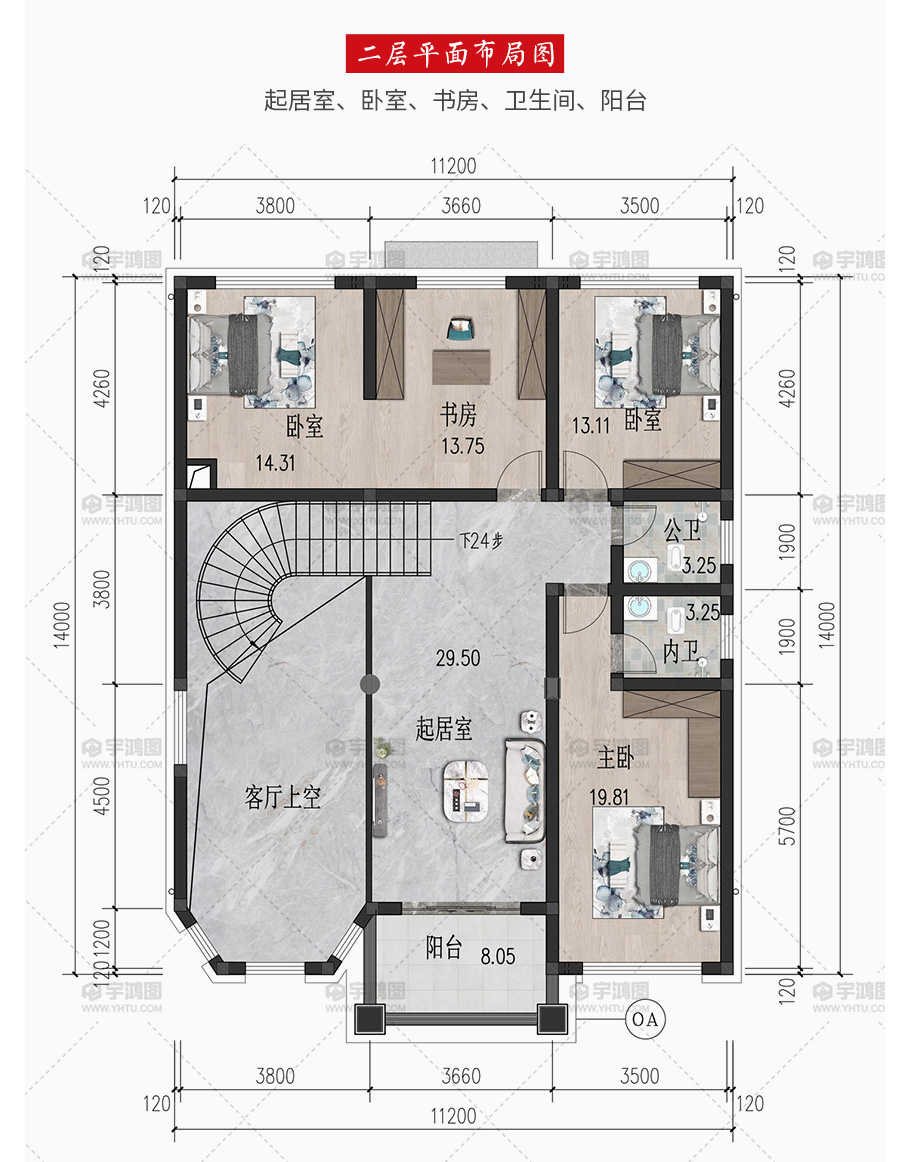| 風格:歐式 | 層數:二層 | 結構形式:磚混結構 | 圖紙編號:YH-2-3093 |