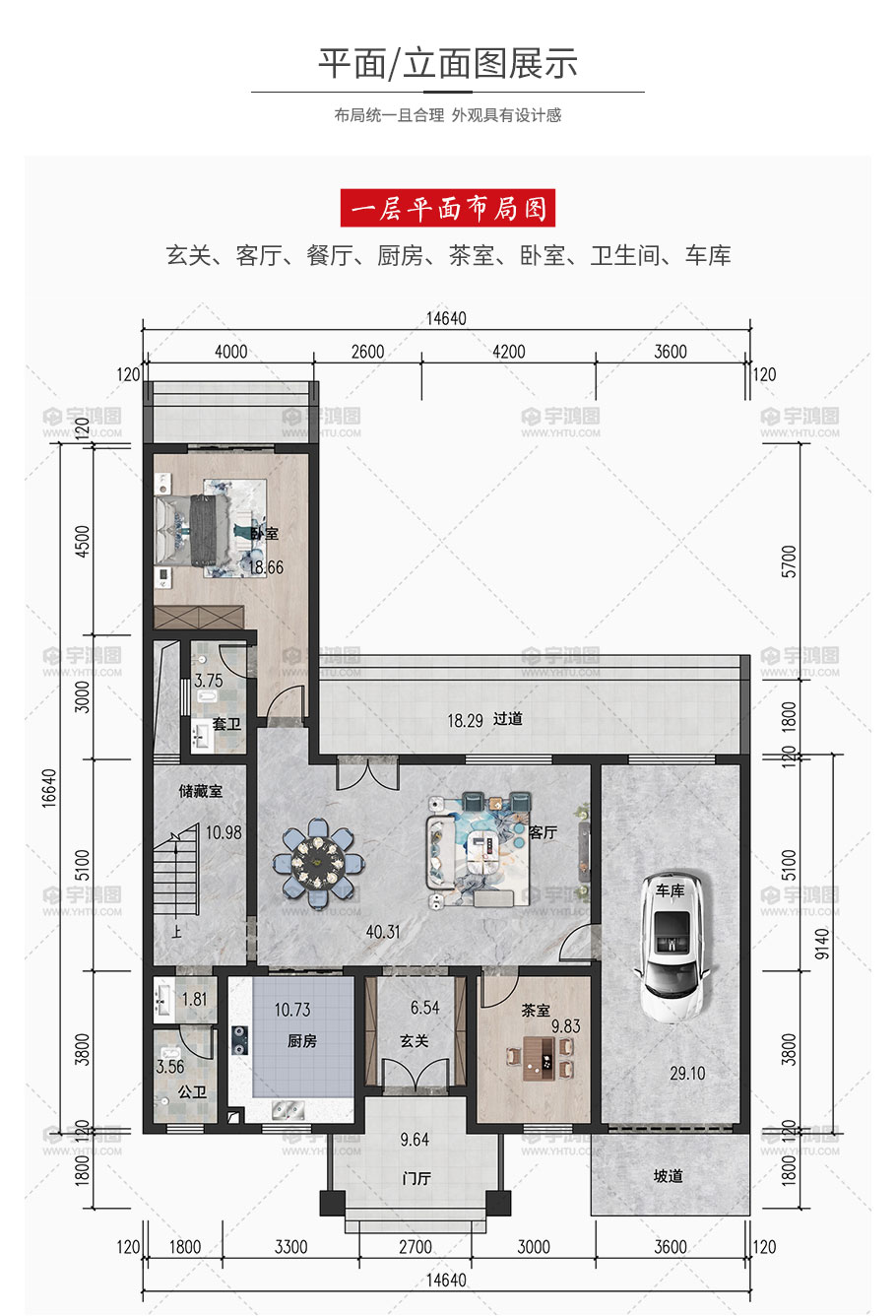 | 開間:14.64米 | 進深:16.64米 | 占地面積:165.6平方米 | 建筑面積:356平方米 |