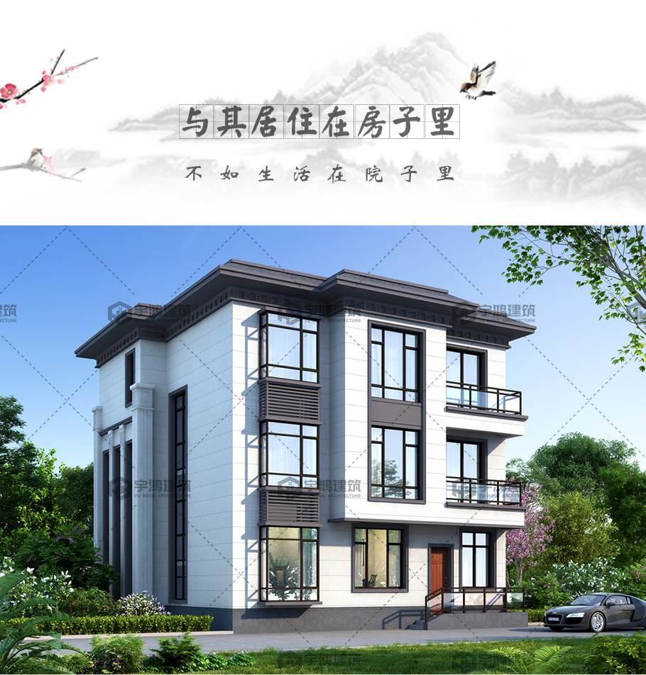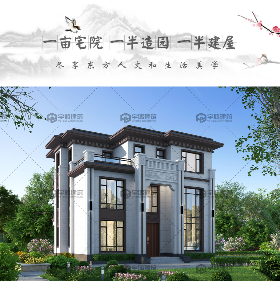 成品圖紙>三層框架新中式占地130平自建別墅設(shè)計(jì)圖