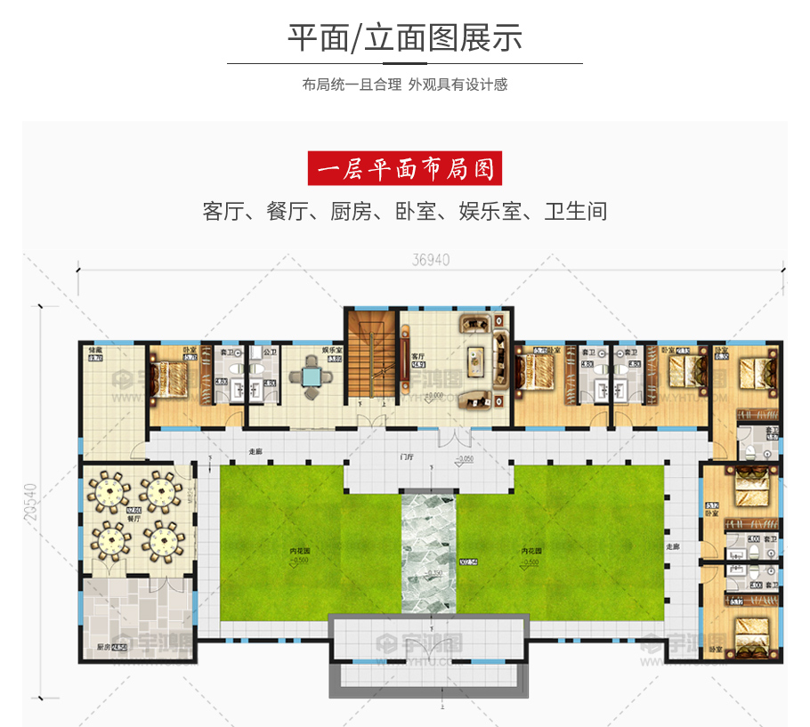 建筑平面圖:一層平面圖,二層平面圖;