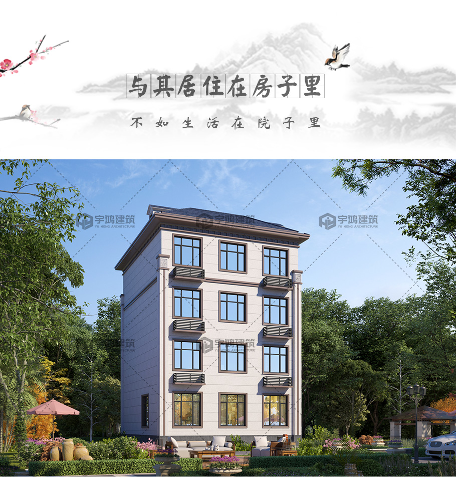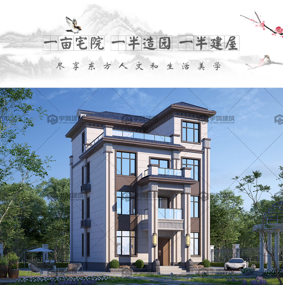 四層新中式框架結(jié)構(gòu)別墅占地120平