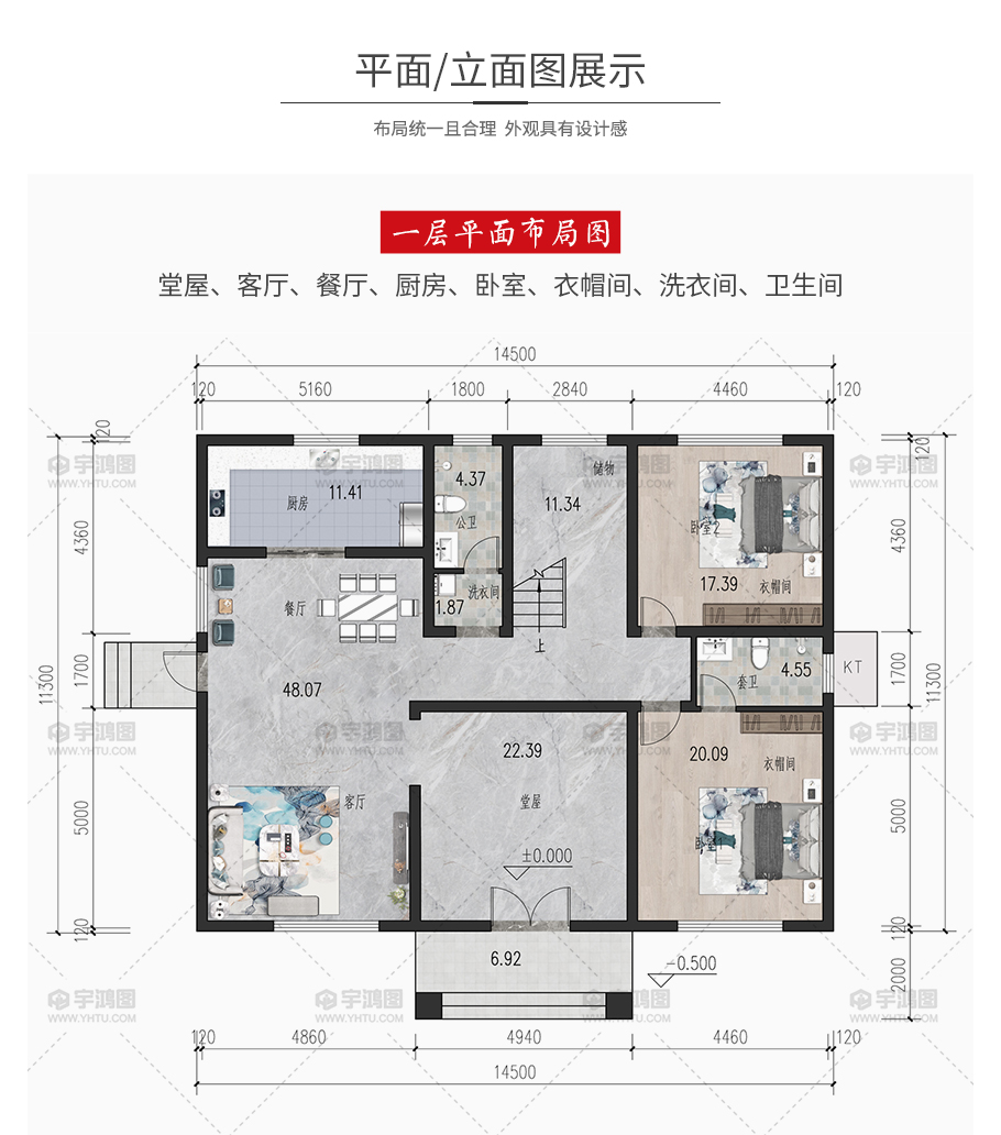 樓層給排水平面圖:一層給排水平面圖,二層給排水平面圖,三層給排水平面圖; 屋頂給排水平面圖; 衛生間排水系統圖 |