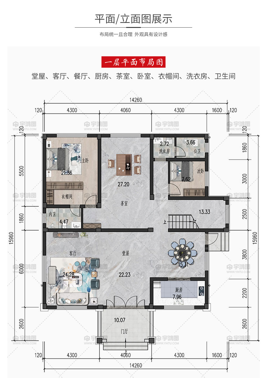 樓層給排水平面圖:一層給排水平面圖,二層給排水平面圖,三層給排水平面圖; 屋頂給排水平面圖; 衛生間排水系統圖 |