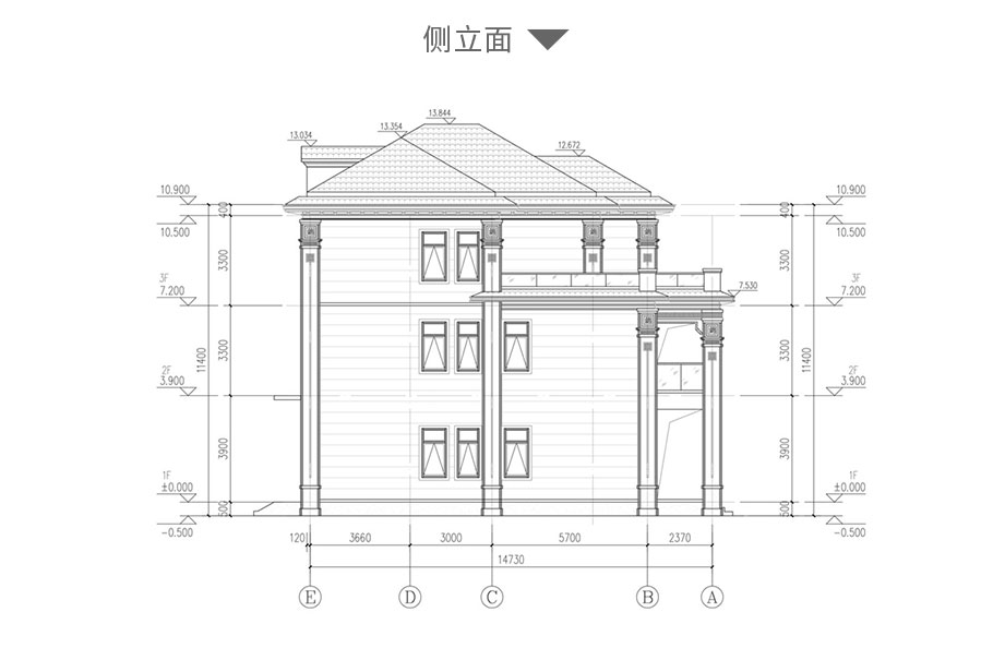 建筑平面圖:一層平面圖,二層平面圖,三層平面圖; 建筑立面圖:東立面圖,西立面圖,南立面圖,北立面圖,剖面圖; 大樣圖:樓梯詳圖,細部大樣,門窗大樣 |