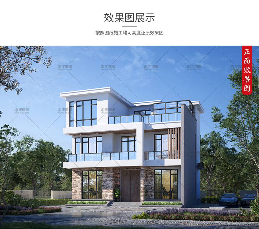 成品圖紙>現(xiàn)代風三層自建別墅占地124平框架結構