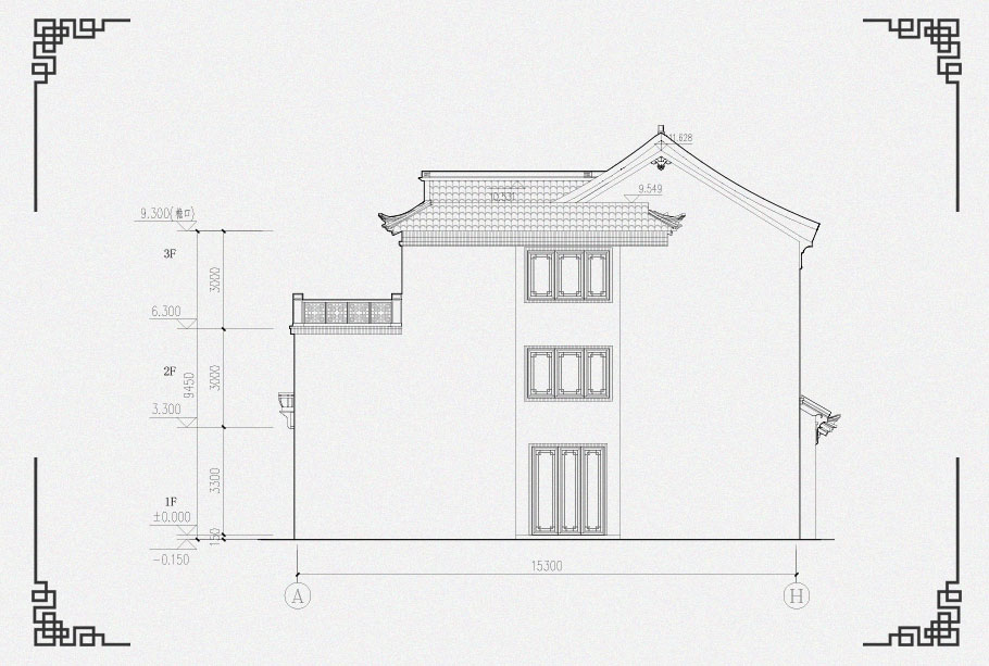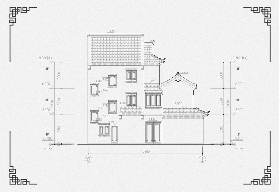建筑立面圖:東立面圖,西立面圖,南立面圖,北立面圖,剖面圖;