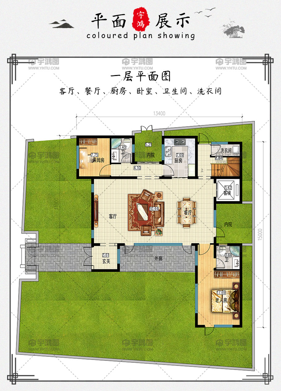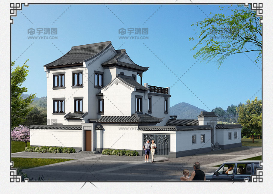 本戶型為142平三層新中式帶庭院別墅設計圖,占地142平方米,這棟古色古香的帶庭院別墅,屋頂采用傳統中式屋頂的設計形式,給人宏大的氣勢,連廊與庭院的結合,整個建筑又透露出清新淡雅、詩情畫意之感。別墅左右留有庭院,視野開闊,庭院開敞,可活動、休閑、停車,種樹。
