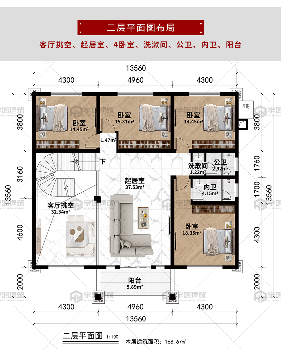 | 開間:13.56米 | 進深:13.56米 | 占地面積:175.14平方米 | 建筑面積:337.34平方米 |
