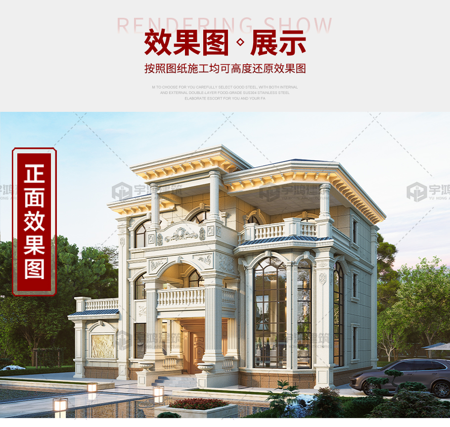 17.42x12.34米框架結構三層歐式別墅全套圖紙