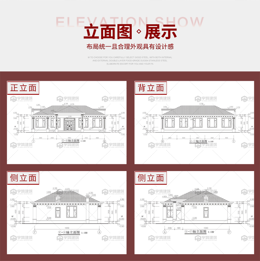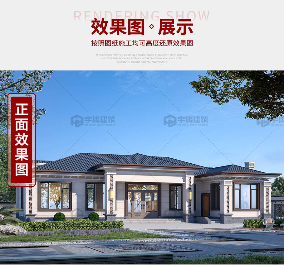 占地約250平方新中式一層別墅全套圖紙