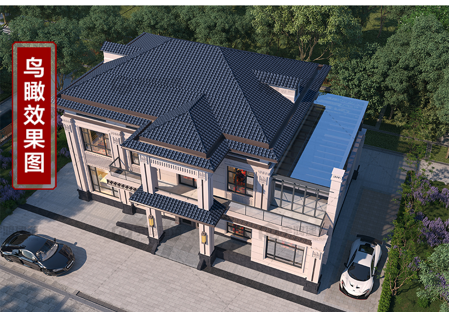 18.50米x12.50米框架二層新中式別墅全套圖紙